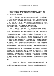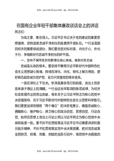 在国有企业年轻干部集体廉政谈话会上的讲话.docx