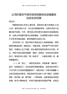 公司纪委在干部任前岗前集体谈话暨廉政谈话会讲话稿.docx
