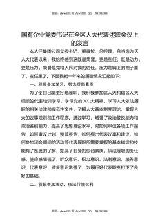 国有企业党委书记在全区人大代表述职会议上的发言.docx
