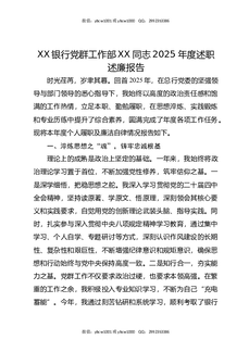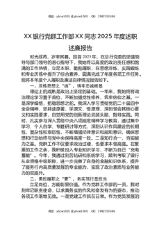 XX银行党群工作部XX同志2025年度述职述廉报告.docx