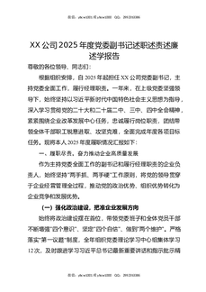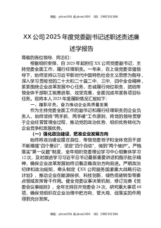 XX公司2025年度党委副书记述职述责述廉述学报告.docx