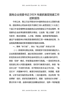 国有企业党委书记202X年度抓基层党建工作述职报告.doc