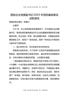 国有企业党委副书记202X年党风廉政建设述职报告.docx