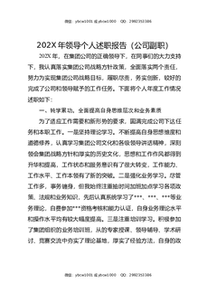 202X年领导个人述职报告(公司副职).docx
