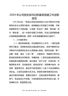 202X年公司党支部书记抓基层党建工作述职报告.docx