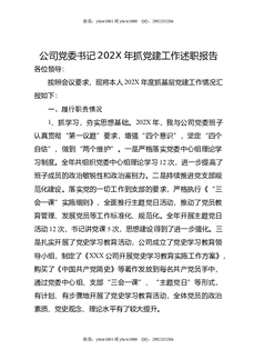 公司党委书记202X年抓党建工作述职报告.docx