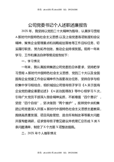国企党委书记202X年述职述廉报告.docx