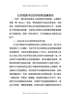 公司党委书记述学述职述廉报告.docx
