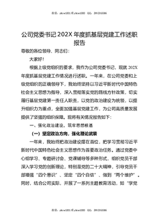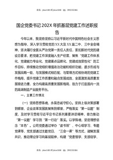 国企党委书记202X年抓基层党建工作述职报告.docx