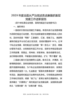 202X年度全面从严治党述责述廉暨抓基层党建工作述职报告(县个体私营企业党委,县网约配送行业党委书记).docx