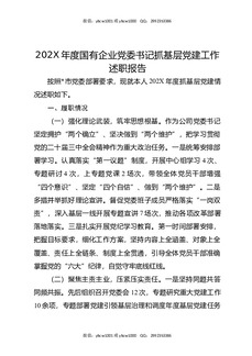 202X年度国有企业党委书记抓基层党建工作述职报告.docx