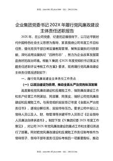 企业集团党委书记202X年履行党风廉政建设主体责任述职报告.docx