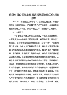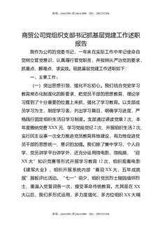 商贸公司党组织支部书记抓基层党建工作述职报告.docx