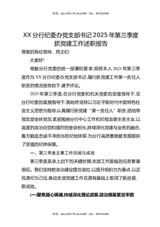 XX分行纪委办党支部书记2025年第三季度抓党建工作述职报告.docx