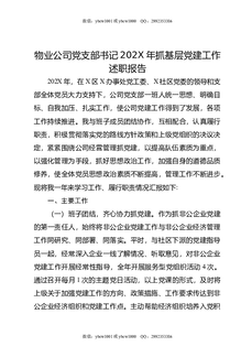 物业公司党支部书记202X年抓基层党建工作述职报告.docx