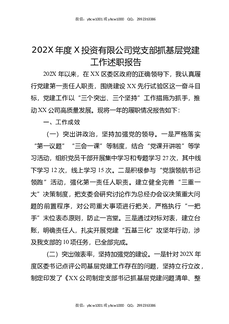 202X年度XX投资有限公司党支部抓基层党建工作述职报告.docx