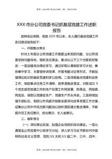 XXX分公司党委书记抓基层党建工作述职报告.docx
