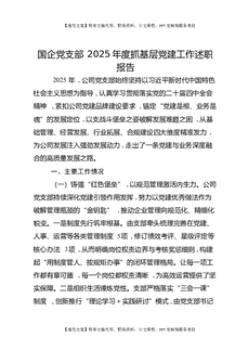 国企党支部2025年度抓基层党建工作述职报告.docx
