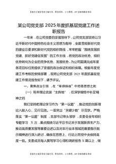某公司党支部2025年度抓基层党建工作述职报告.docx