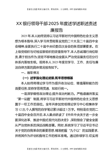 XX银行领导干部2025年度述学述职述责述廉报告.docx