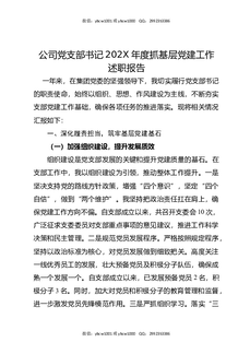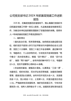 公司党支部书记202X年抓基层党建工作述职报告.docx