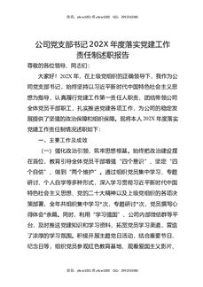 公司党支部书记202X年度落实党建工作责任制述职报告.docx