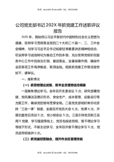 公司党支部书记202X年抓党建工作述职评议报告.docx