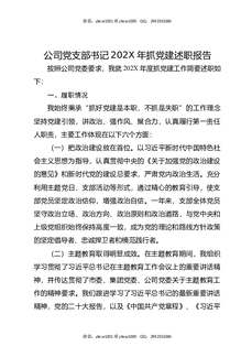 公司党支部书记202X年度抓基层党建工作述职报告.docx