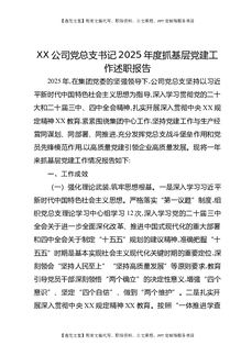 XX公司党总支书记2025年度抓基层党建工作述职报告.docx