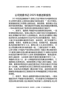 公司2025年度党政领导班子工作述职报告:坚持党建引领赋能高质量发展,聚焦主责主业提升核心竞争力.docx