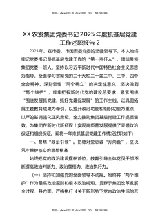 XX农发集团党委书记2025年度抓基层党建工作述职报告2.docx