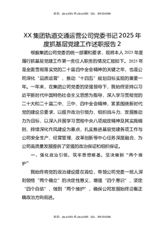 XX集团轨道交通运营公司党委书记2025年度抓基层党建工作述职报告2.docx
