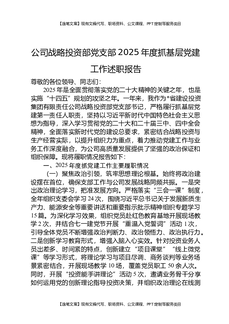 公司战略投资部党支部2025年度抓基层党建工作述职报告.docx