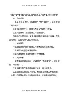 银行党委书记抓基层党建工作述职报告提纲.docx