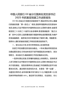 中国人民银行XX省分行国库处党支部书记2025年抓基层党建工作述职报告.docx