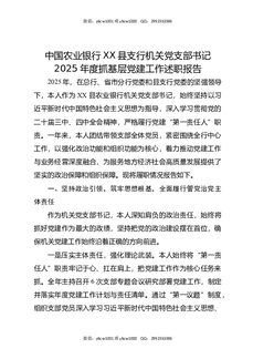 中国农业银行XX县支行机关党支部书记2025年度抓基层党建工作述职报告.docx
