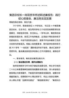 集团总校长一岗双责年终述职述廉报告:践行初心担使命,廉洁务实促发展.doc