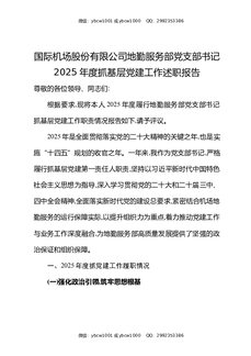国际机场股份有限公司地勤服务部党支部书2025年度抓基层党建工作述职报告.docx