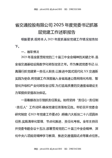 省交通控股有限公司2025年度党委书记抓基层党建工作述职报告.docx