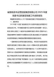 省国有资本运营控股集团有限公司2025年度党委书记抓基层党建工作述职报告.docx