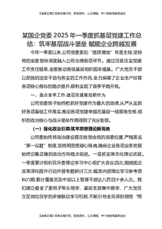 某国企党委2025年一季度抓基层党建工作总结:筑牢基层战斗堡垒,赋能企业跨越发展.docx