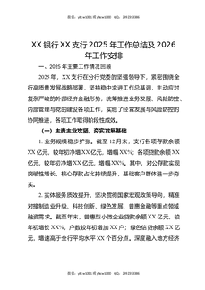 XX银行XX支行2025年工作总结及2026年工作安排.docx