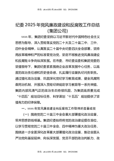 纪委2025年党风廉政建设和反腐败工作总结(集团公司).docx