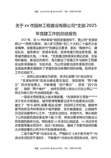 关于XX市园林工程建设有限公司党支部2025年党建工作的总结报告.docx