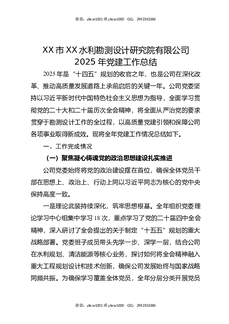 XX市XX水利勘测设计研究院有限公司2025年党建工作总结.docx