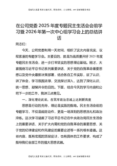 在公司党委2025年度专题民主生活会会前学习暨2026年第一次中心组学习会上的总结讲话.docx