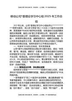 移动公司党委理论学习中心组2025年工作总结.docx
