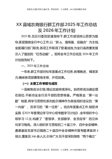 XX县域农商银行党群工作部2025年工作总结及2026年工作计划.docx