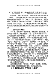XX公司党委2025年度党员发展工作总结.docx