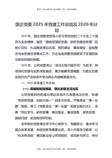 国企党委2025年党建工作总结及2026年计划.docx